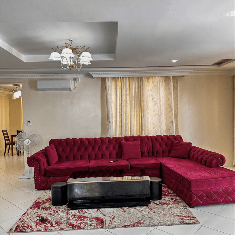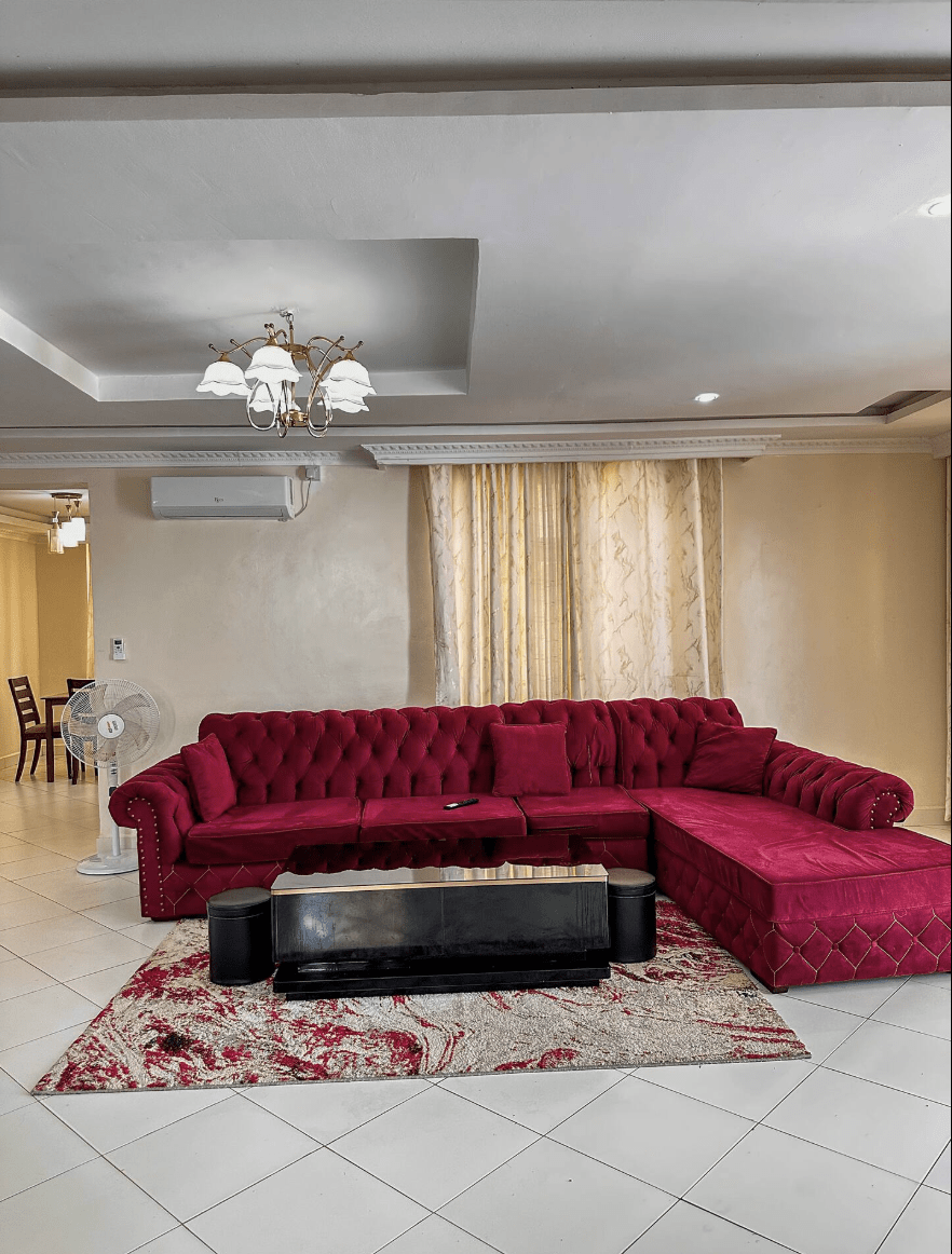 Set within a secure and peaceful complex, the apartment features a bright living room with air conditioning, a comfy sectional couch, and a 50” Smart TV, alongside a fully equipped kitchen for home-style cooking. With 132m² of space, high-speed 60 Mbps WiFi, and cooling options including AC and ceiling fans, you’re guaranteed a comfortable stay.