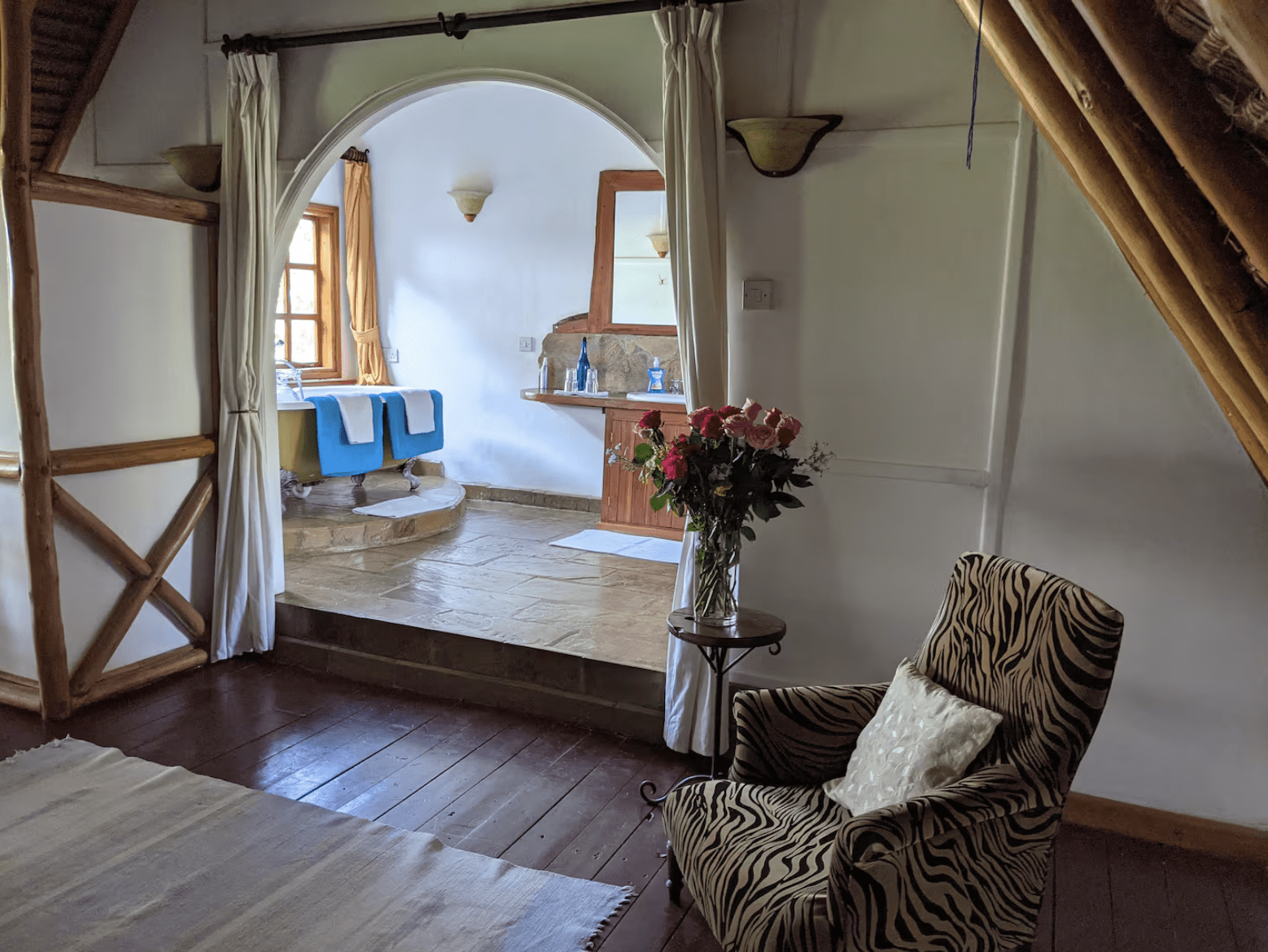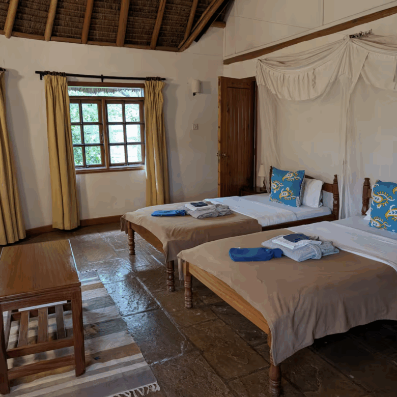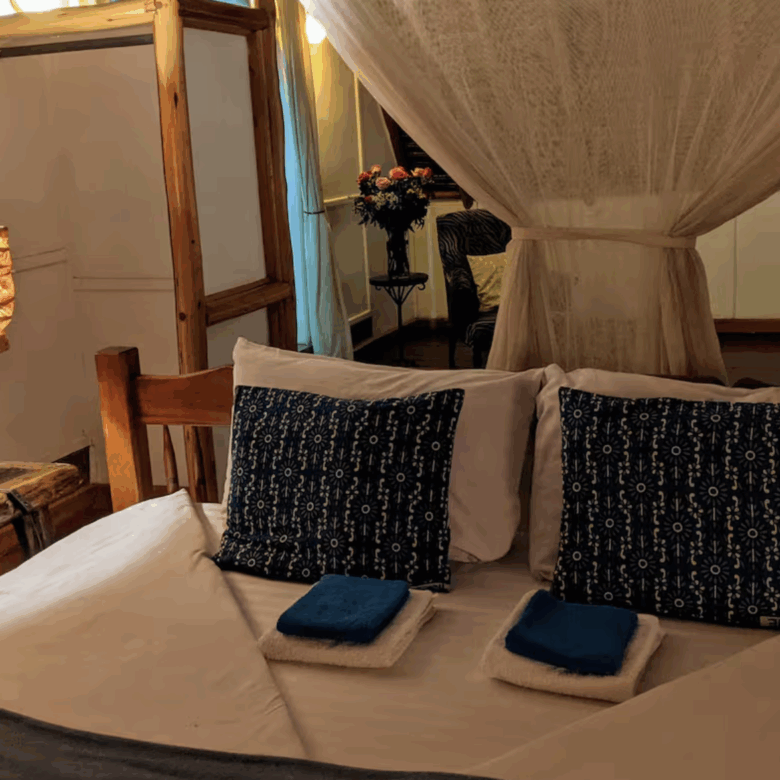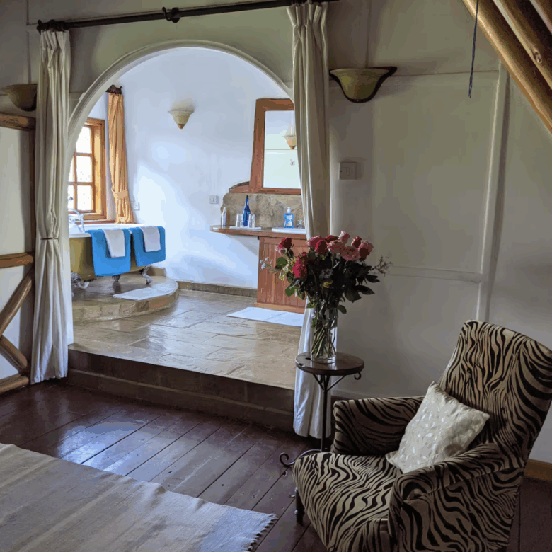 The villa features two en-suite bedrooms, including a master suite with a private terrace and a unique bathtub with game-viewing opportunities. Designed for both comfort and adventure, Kampi ya Karin combines the charm of the wild with modern amenities, making it ideal for families, couples, or small groups seeking a quiet escape near Nairobi.